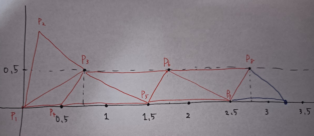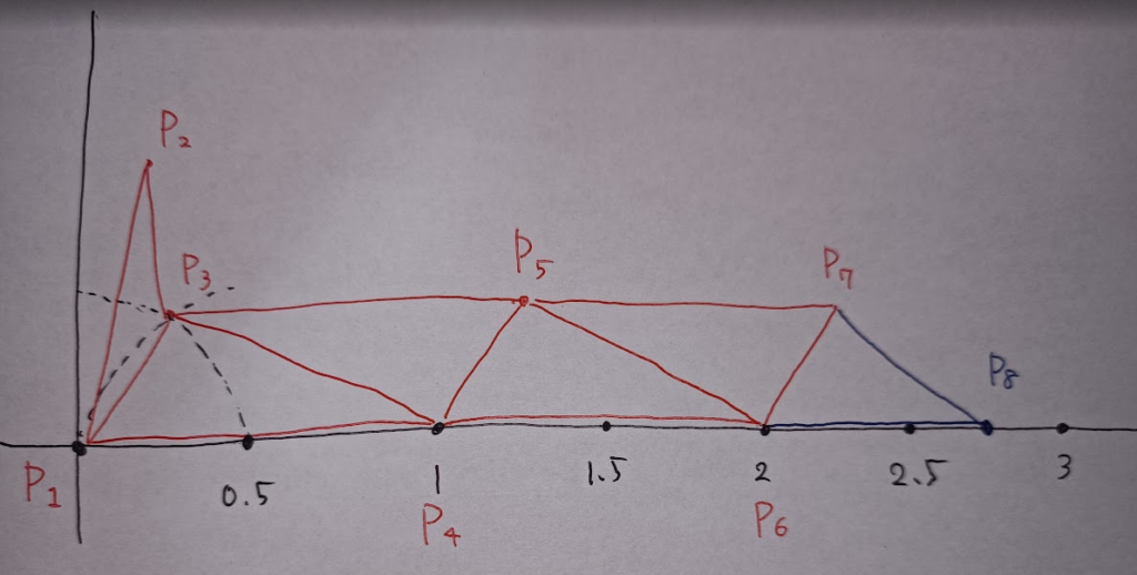 $P_1P_3=0.5$ にとっている時点で,$0.5\leq P_2P_3$ は大丈夫です.$P_2P_3\leq 1$ も確かめられます.あとは状況が全部平行移動されていくだけなのであまり問題は起きません.